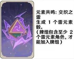 生成1个雷元素骰。(牌组包含至少2个雷元素角色,才能加入牌组)