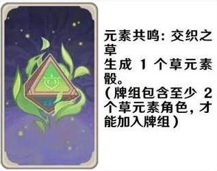 生成1个草元素骰子。(牌组包含至少2个草元素角色,才能加入牌组)