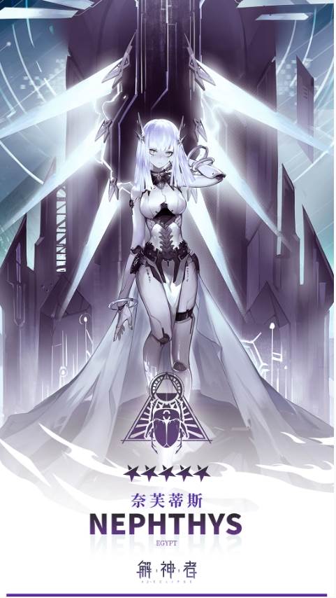 游戏中唯一一位机械体元素神格,透明的外壳,包裹着美丽的内骨骼,曾经焚烧殆尽的冥神双翼再度展开——她就是「亡灵守护者」奈芙蒂斯。