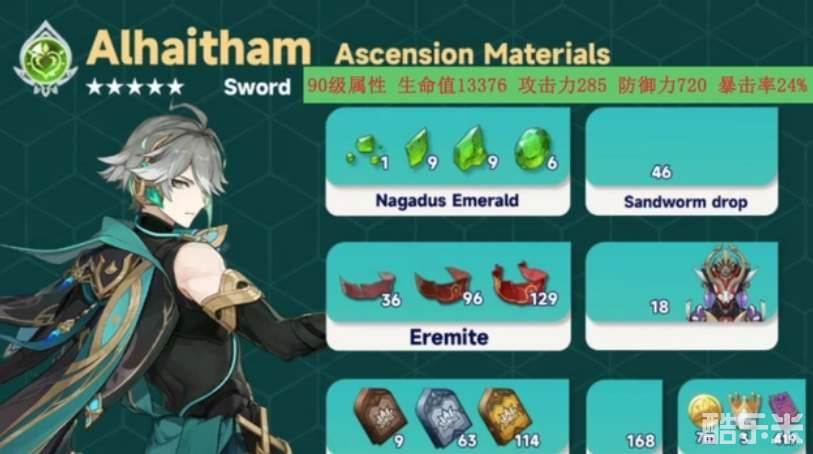 4、艾尔海森这个角色作为草元素主C强度还是非常值得肯定的,如果玩家们想要培养的话可以先收集准备一部分材料。