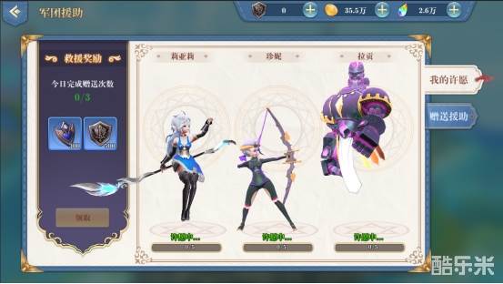 【公会援助】:公会成员之间互相援助神灵碎片,完成全部求援还可以领取左侧奖励。