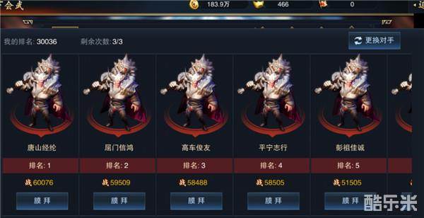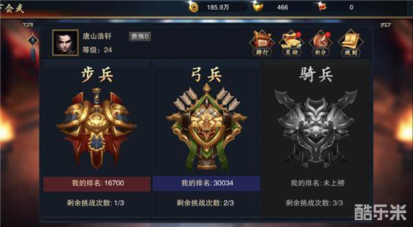 想要成为被膜拜对象的你,要从头开始打败前方的拦路虎才行。系统会根据你的实力自动匹配相应的对手,你可以任意选择拥有挑战按钮的勇士进行挑战,进入比武后战斗过程为自动战斗,挑战成功则会顶替目标队伍排名,失败则维持原排名。战斗中如果强行退出游戏则算作挑战失败,并且会成功扣除挑战次数。每天每个兵种有三次挑战次数,希望大家能够好好珍惜机会,努力提升自己的排名。
