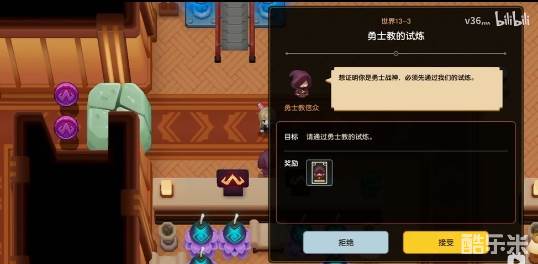 1、在游戏中这个【勇士教的试炼】就是世界13任务,在任务栏中就可以找到;