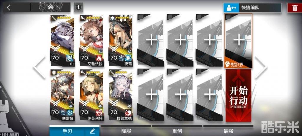 开局部署顺序为山↓拉普兰德←夜莺←塞雷娅←小火龙→小羊→,然后挂机到结束。