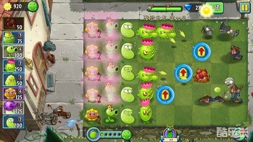 关卡里还有几个特殊瓷砖,瓷砖上有箭头,其实这个就跟冰河世界的瓷砖有点类似。僵尸们走到上面,就会往箭头所指的方向挪一列,基本可以不用管。