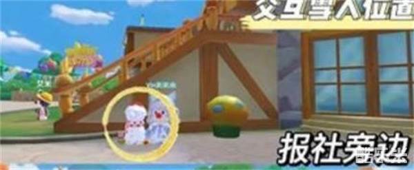 2:首先第一个在报社旁边占到雪人,如图所示,我们靠近即可进行交互;
