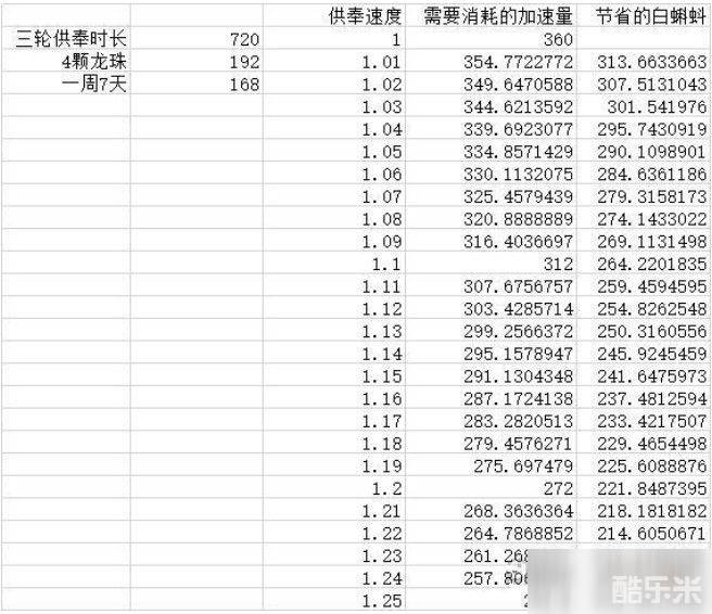 这张图展示了供奉速度的收益,可以看到,1%的供奉增速每个月仅能给你带来200~300白蝌蚪的收益。且供奉速度越快,边际收益越低。所以满星的司母戊鼎,每天给你的收益不超过50白蝌蚪。