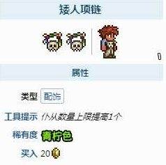 6、然后是矮人项链,玩家必须打败世纪之花后,可以在夜晚以20金币的价格从巫医处购买。