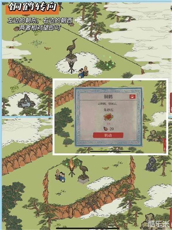 5.铜鹤记得需要转向,左边的朝东,右边的朝西,两个铜鹤转成相对就可以了