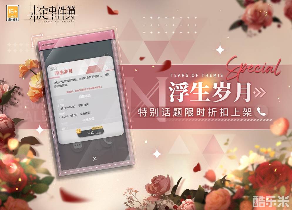 -活动期间, 4位男主特别通话话题<浮生岁月>将限时折扣上架,每位男主的通话话题解锁价格为12元,共计6段语音通话内容。