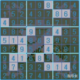 1、图画被分为81个格子,其中又被较粗的线分为9个3 x3的九宫格。选中空白格,点击下方的数字键盘填入数字,满足以下条件即为成功:每行、每列、每个粗线内的九宫格中都包含数字1-9,且不重复。