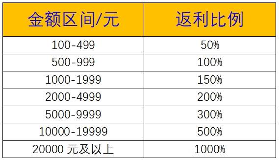 此活动为单日累计充值,达到以下档位,可活动对应档位比例的货币返利,单日累计,次日重置;