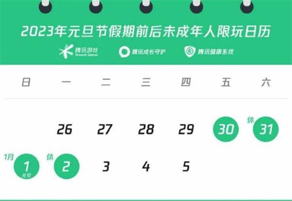 1:如图所示,下面是腾讯游戏2023年元旦未成年游戏时间表,其他的游戏基本上都是差不多的;