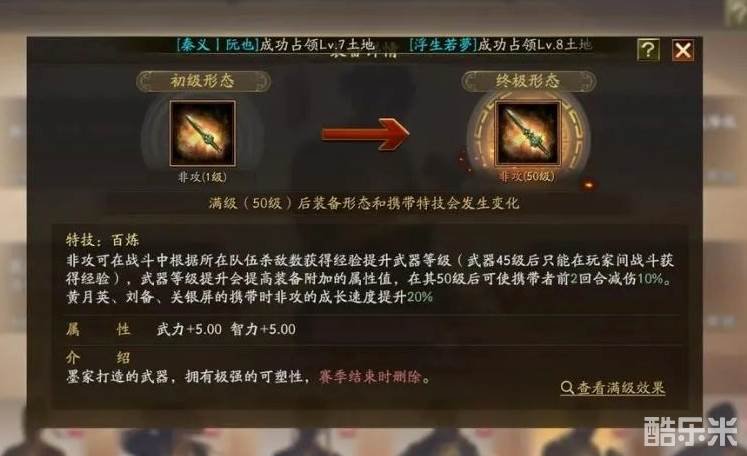 强力内卷型武器!满红玩工匠就是为了这个!不为别的,能将速度和武力完全并排的强力武器!可以想象得到的是:公孙瓒、孙尚香、凌统这类武将得到大幅增强!