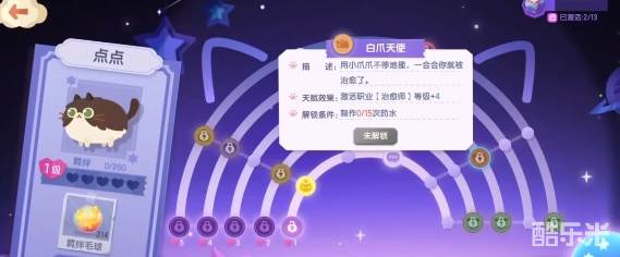 3、前期建议可以先把点点天赋升到三级,升到三级之后可以解锁治愈师职业。