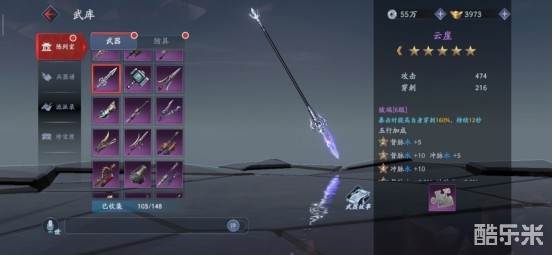 云崖这把枪的5星特效是枪头上出现紫色的云雾!霸气十足。且大家注意这把枪的特性:暴击时提高自身穿刺160%,持续12秒。这枪在爬试练塔的时候极为给力。