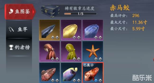 激活任一稀有徽章后,即可将该种鱼挂在鱼竿上,挂在鱼竿上的鱼可以再宝船场景中进行展示。