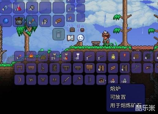 最初始的工作台需要使用10份木材制作,也是我们前期第一个制作的工具设施之一了。将熔炉制作出来之后放入工具栏然后点击地面就可以将其放置了。