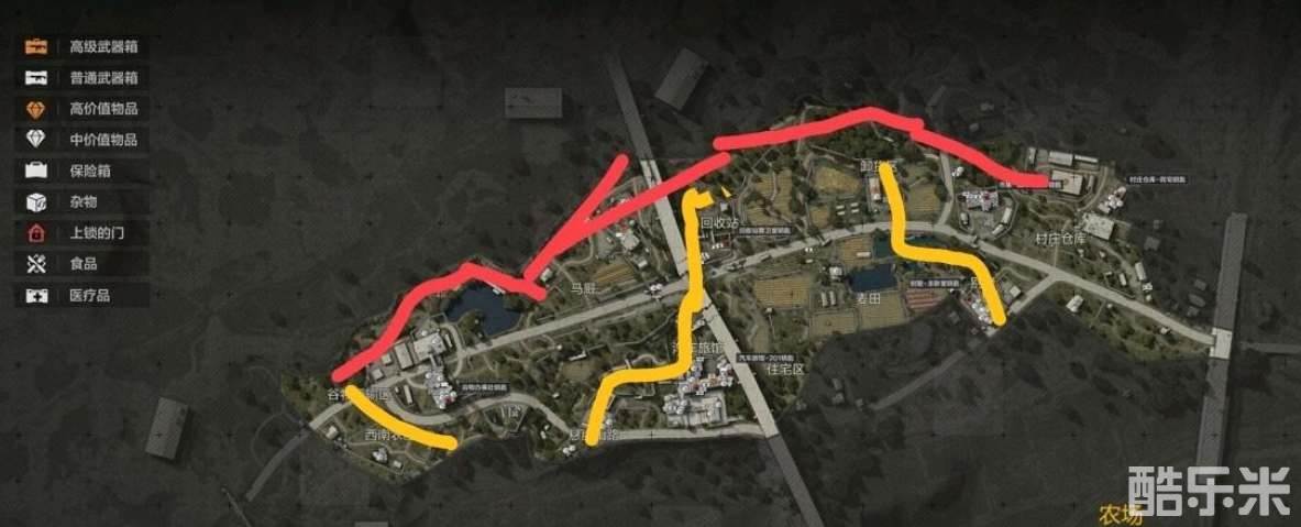 2、跑商的路线可以参考下图所示,建议组件四人小队一起进行跑商避免其他玩家来干扰,路线尽量选择比较偏离的出生点,可以减少遇到其他人的概率;