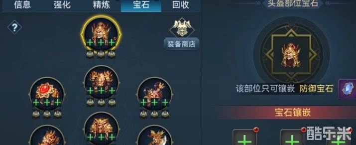 等到玩家主公等级达到55级的时候就开放宝石玩法,点击主界面中的主公选项,进入其中选择装备,就可以看到在强化、精炼的后面出现了宝石选项。所以装备是镶嵌到主公上面,加成的是战力和选择的武将没有关系,是和阵容完全不同的一种玩法。