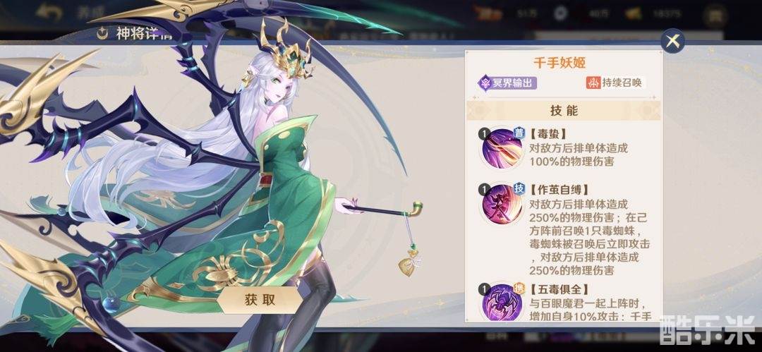 养起来后召唤出来的白骨将军小蜘蛛是真的猛,可让敌方快速减员