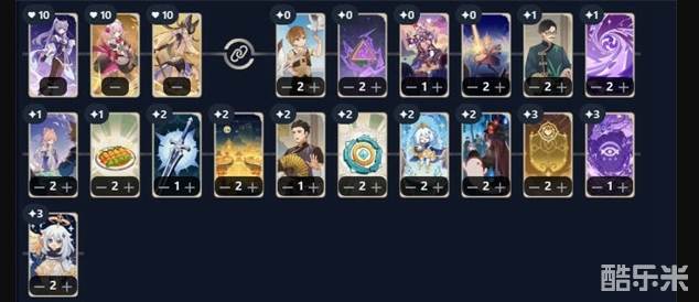 2、事件牌,支援牌,场地牌为立本,元素共鸣·交织之水*2,骑士团图书馆,群玉阁,元素共鸣·粉碎之冰*2,运筹帷幄*2,白垩之术,莲花酥,蒙德土豆饼,唤雷的头冠,璃月港口*2,田铁嘴,便携营养袋,最好的伙伴!*2,星天之兆,仙跳墙,噬星魔鸦,祭礼剑,风鹰剑,如雷的盛怒,派蒙,吐纳真定,护法之誓*2。