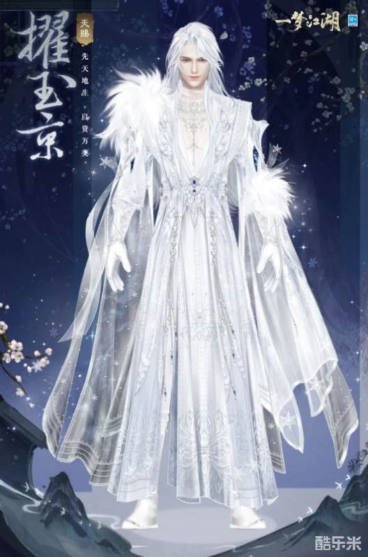 传闻世有昆仑玄宫,位于诸天之中,又名玉京,无人缘见,云锦楼大师傅梦入仙乡,一窥盛景,见仙尊衣白翎着华袍坐于大殿上,俄而梦醒,遂得此衣时装·擢玉京。少侠一袭银白锦袍,钻石与青金石所制成的华美钻饰点缀其上,胸前内衬半透薄纱,更显少侠俊朗不凡。