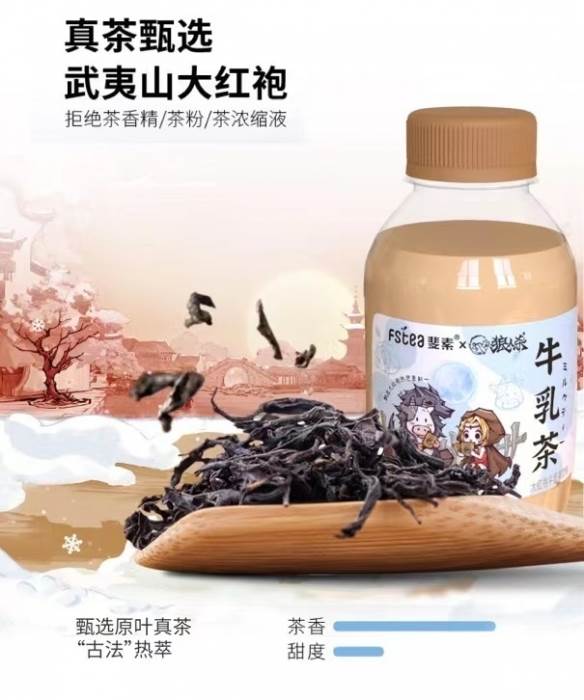 本次联动精选了两款不同风味的饮品,一款是大红袍牛乳茶,将大红袍的馥郁“岩骨”茶香和浓香牛乳完美融合;另一款是草莓茉莉牛乳茶,融合毛尖茉莉绿茶的清雅茶香还有花香、草莓的果香,真牛乳的浓香,两款饮品,相信都能给大家带来无与伦比的味觉体验。同时小巧的瓶装设计,方便大家随时随地,畅享美味。