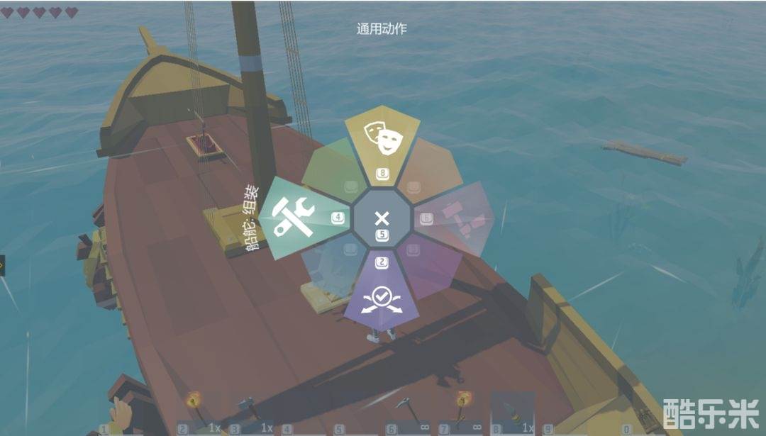 7、当你确认好船体位置,以及船体摆件无误后,靠近船舵按Q键,在轮盘左侧选择“组装”,即可完成帆船的初级组装。