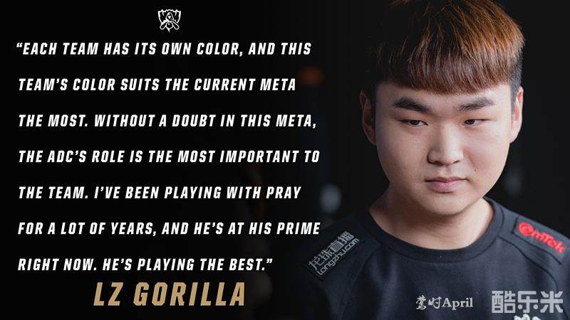 每一个队伍都有自己的特色,我们队伍的特色就是非常契合现在的版本。毫无疑问,这个版本的ADC对于整个队伍来说是最重要的。我已经跟Pray配合很多年了,现在他正处在巅峰时期。他是目前最好的选手。