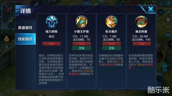 暴走熊猫:刘禅的范围性输出技能,能够对周围敌方持续造成伤害,并且伤害也不低。需要注意的是,刘禅在使用此技能后,将不可以使用其他技能,所以此技能的使用时机需要正确判断,建议先控制住敌人再用此技能持续输出。