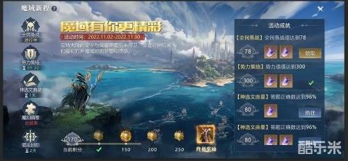 4、「神选文曲星」:每日进行魔域知识问答,根据答题正确数量领取里程碑奖励。回答正确率与回答速度将会影响总体排名,活动结束后将额外发放排名奖励。