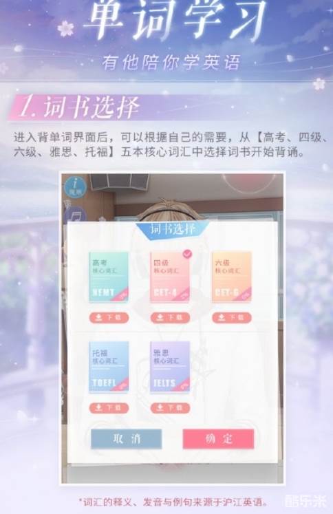 3、一共有五本单词书可供选择,需要玩家进行下载。