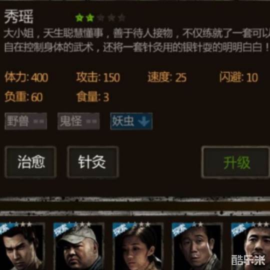 其实秀雅这个角色虽然属性一般,但是总体强度还是不错的。在两星的情况下,体力值400,攻击150,速度25,闪避10,负重60,食量3,看属性其实不是很强的,不能做输出存在,而且他对虫妖的攻击相对较弱。但是这不是说他没有用,他主要也不是为了攻击或者输出而存在的,他主要是为了保护队友,是替换彩儿的存在。