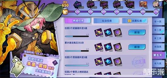 1、在新手的养成任务中,第五天的任务是要求玩家激活3次鬼王力。这个指的其实就是武灵技,需要玩家拿红品或者橙品的武灵技给相同的武灵技共鸣,累计完成三次即可达成任务目标了;