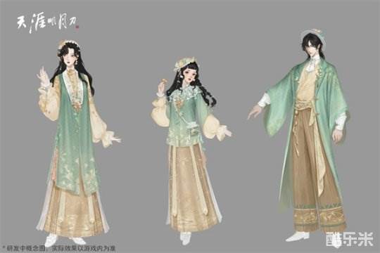 新春版本期间还将迎来全新普赠外观【白果香榧】,为少侠的新年战袍加码放送!女款自明代的褙子服式汲取设计灵感,鬓边珠翠曳彩,裙裾花叶生香,对襟青衫饰以松针暗纹,层层叠叠,如碧水粼光;而在可爱泡泡袖的基础之上,少女款更融入镂空云肩、小檐帽等新潮设计,自成一派烂漫;男装则拼接劲装与礼服的硬朗线条,将两者剪裁完美融合,在侠风洒落之余,不失衣冠优雅。