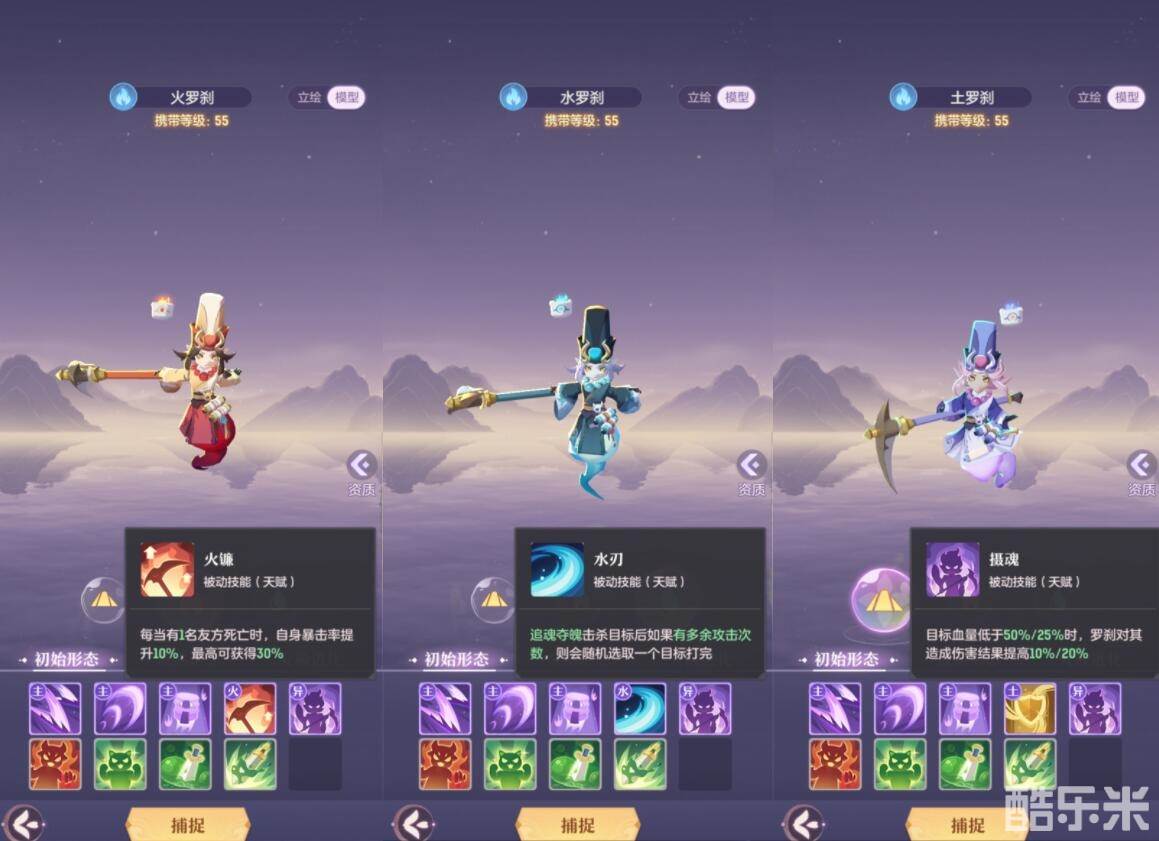 1、关于属性选择,罗刹的三系被动如下图,水系下限最高,土系上限最高,可以根据个人需要选择培养,火系需要献祭队友,不是那么好用,不推荐培养