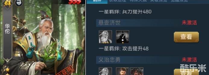 除了技能效果非常给力之外,华佗的羁绊激活也比较简单,只要能找到一星关羽,一星左慈和孙权、周泰等武将就可以激活全部的羁绊。获得兵力提升,攻击提升等效果,在目前抽卡如此多的情况下很快就能凑齐。所以小编强烈建议大家培养华佗,即使是平民玩家也能收益很大。