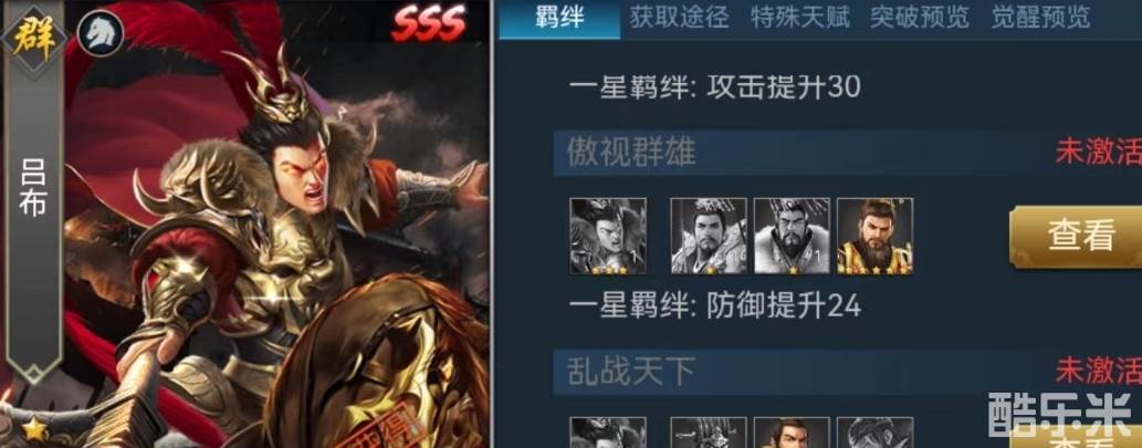 技能身先士卒,只要吕布进入到战斗中,自身移动速度将会提升,第1次攻击还会附加眩晕效果。技能辕门射戟,在吕布攻击时会有一定几率对身前范围内的目标造成同步伤害,并且附加眩晕。最后一个被动天下无双的效果是开战之后吕布获得武力值提升,无法驱散,一直持续到战斗结束。本身就已经非常强大,在技能的加持下更是能够打满全场输出爆炸。从技能效果就可以看出,吕布不仅伤害高,还附加有相当可观的眩晕几率。这样就能组成很好的输出加控制流派玩法。