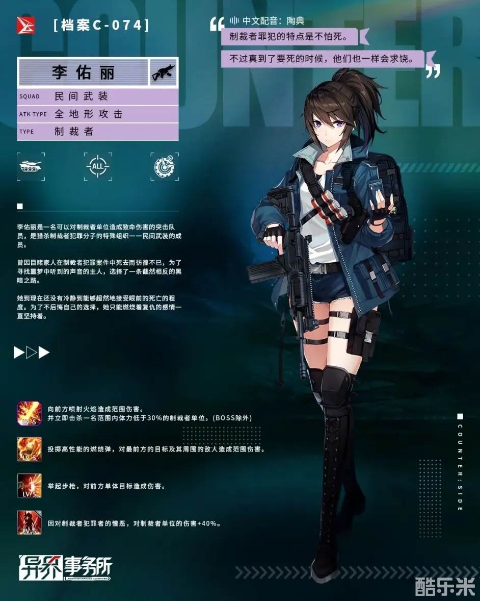 《异界事务所》游戏中李佑丽是最近上线的全新角色,相信很多玩家还不清楚,角色李佑丽的强度是什么。接下来就让小编给大家带来异界事务所李佑丽强度分析,感兴趣的小伙伴们一起来看看吧,希望可以帮助到大家。