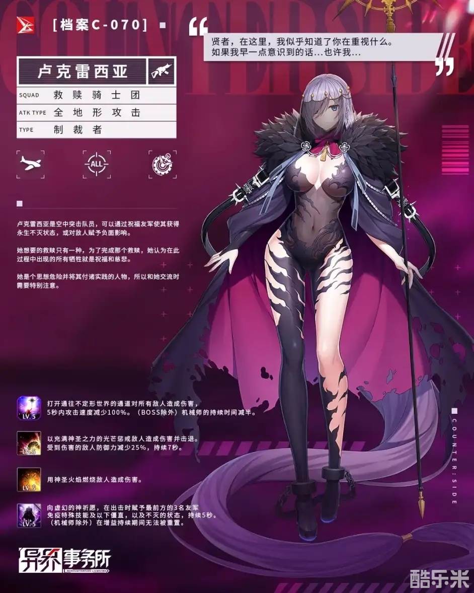 在异界事务所游戏中很多玩家还不清楚,角色卢克雷西亚的强度怎么样。接下来就让小编给大家带来《异界事务所》卢克雷西亚强度分析,感兴趣的小伙伴们一起来看看吧。