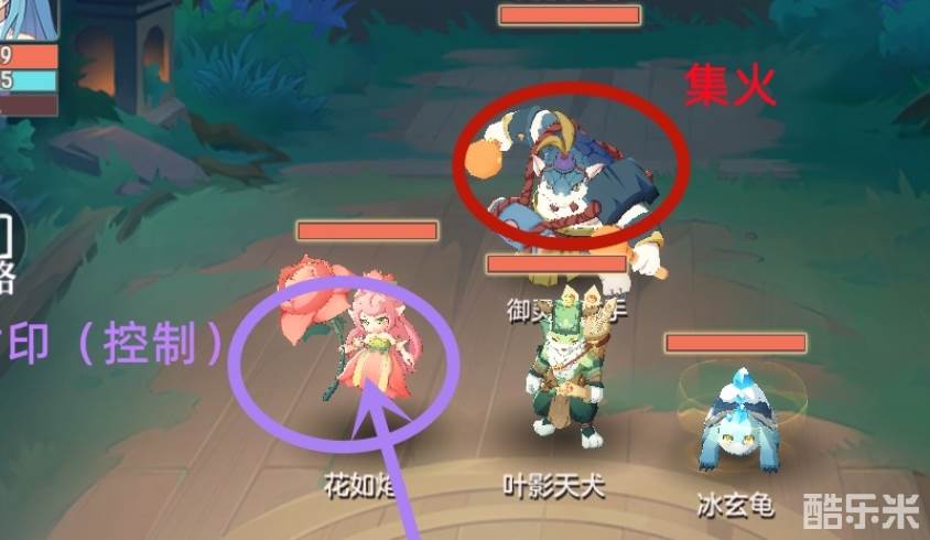 进入战斗后,优先封印敌方【花如焰】,然后集火击杀【御灵鼓手】。