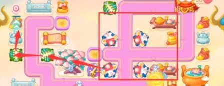 6、具体炮塔如下,主要是飞机,飞机直接锁定桃树打高分,右边出口和萝卜附近放置泡泡塔减速。