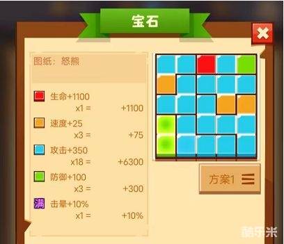 3、方案3:生命红*1+速度橙*5+攻击蓝*11+防御绿*8;