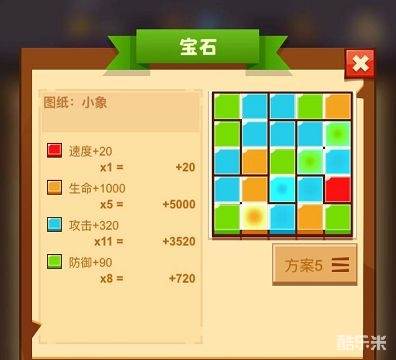 5、方案5:生命红*2+速度橙*10+攻击蓝*10+防御绿*3;