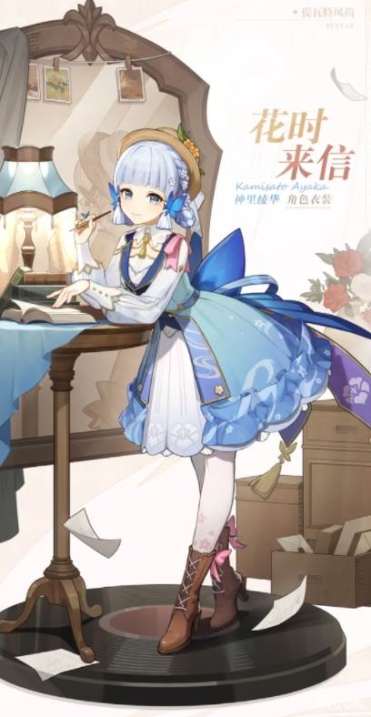 旅行者们好~ 神里绫华全新衣装——「花时来信」将在3.4版本更新后上线,旅行者们可前往角色装扮商城购买获取该衣装。 接下来一起看看衣装的细节吧~