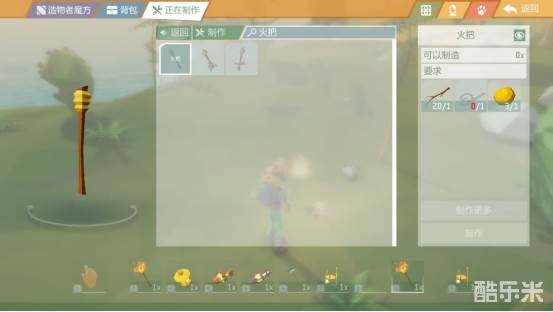 小伙伴们可以用1根木棍、1条任意绳子以及1个树脂合成火把。