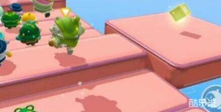 2、来到蓝色风扇障碍的时只需要正常躲避就行了,跳上平台的时有个台阶上有道具可以捡,使用道具还能淘汰其他蛋仔。