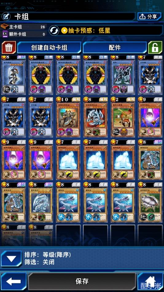 其他的卡,你就用你的卡组排序选择按等级,从高到低排序,把高星的怪全部拉上来就完事了(融合怪兽除外)。