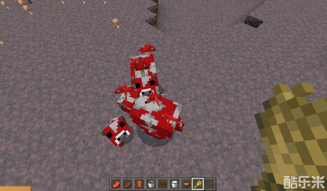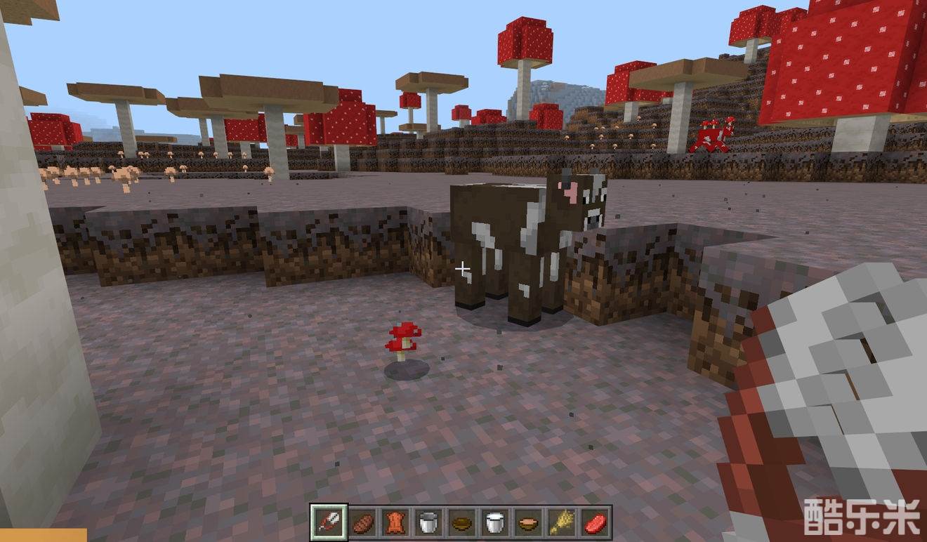 用剪刀点击可以获得5蘑菇(用剪刀给它们除去蘑菇,哞菇就会变成普通的牛,无法再变回哞菇。)